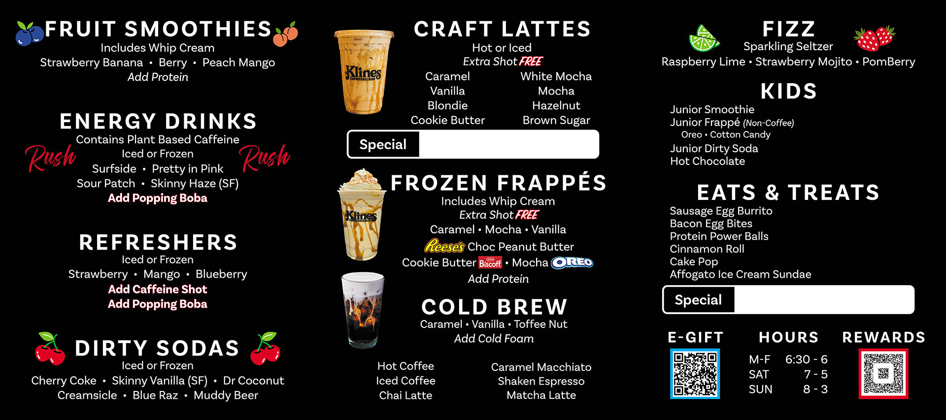 coffee energy drinks craft espressos splashers dirty soda smoothies frappés sweets eats treats